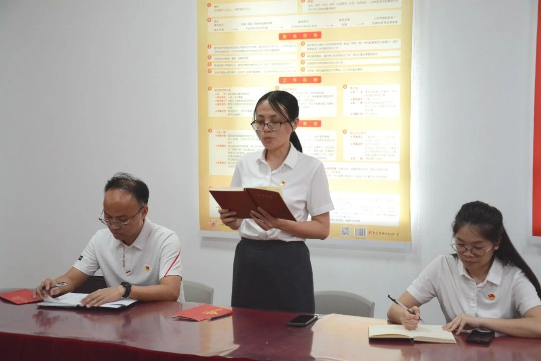 2024年7月4日下午,在党建引领下,南光中英文学校党支部在学校组织生活馆开展了全体党员党纪学习暨政治生日会。会议由组织委员谭小仪同志主持,会议共有三项内容。