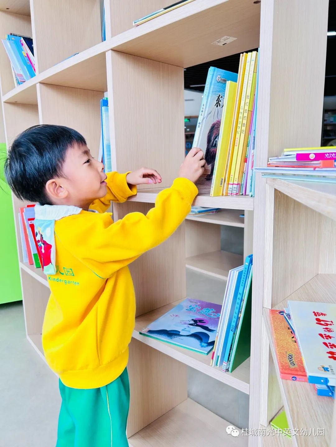 “要保持安静,轻拿轻放,爱护图书哦!”图书馆里的老师给孩子们讲着阅读的纪律。孩子们在征得老师的同意后轻轻拿起书本,安静地围坐在书桌边阅读起来。