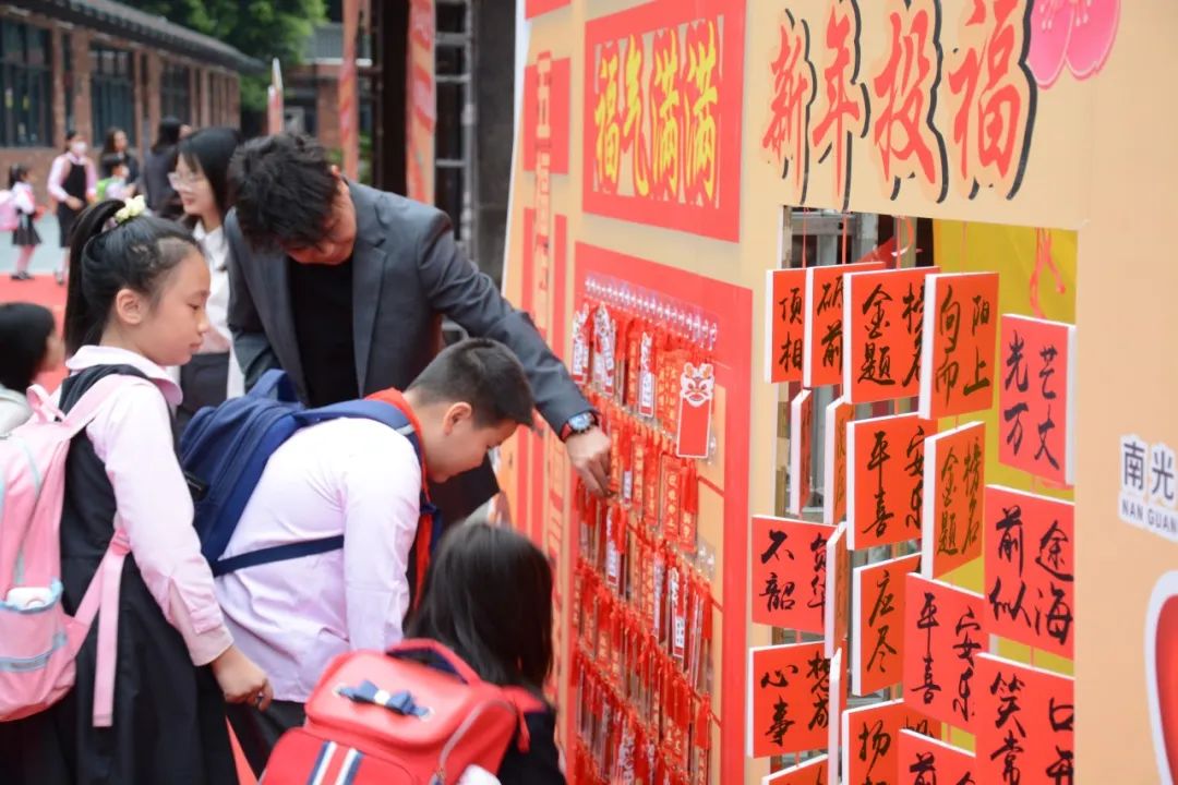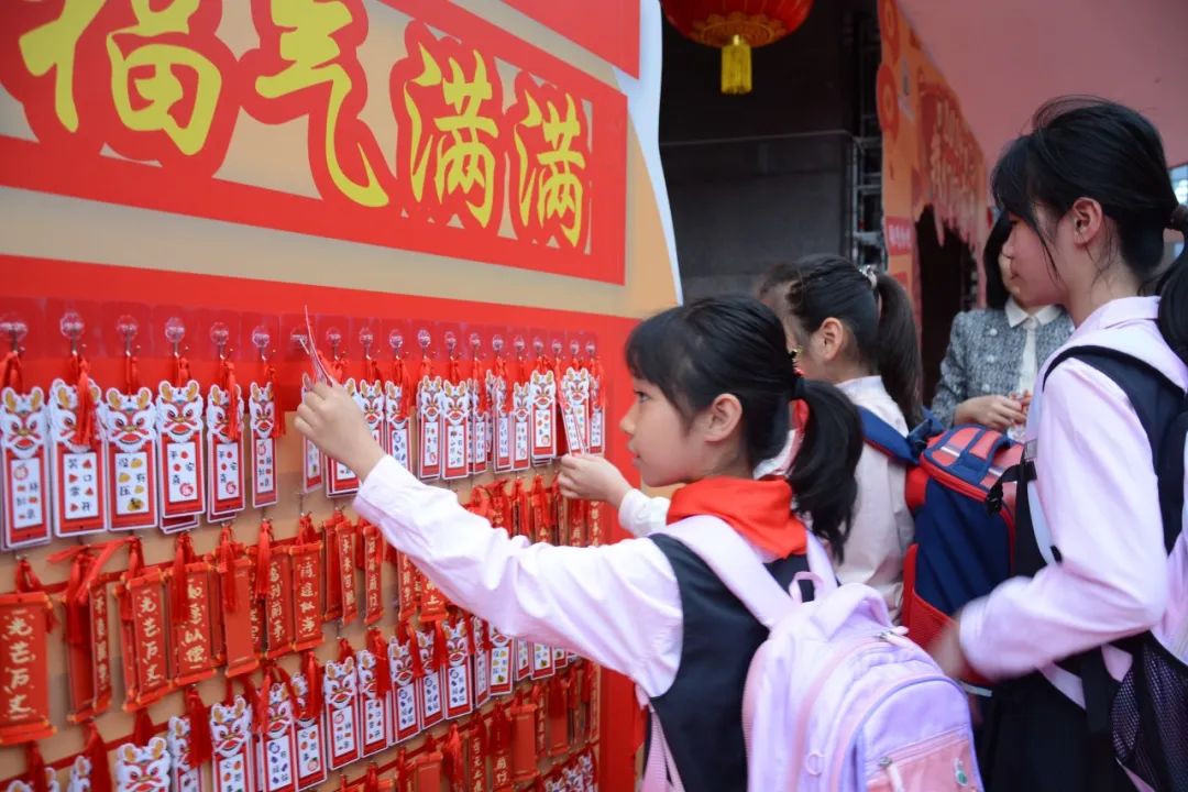 孩子们带着美好的憧憬在学校精心布置的祝福墙上取下“满满的福气签”并进行有趣的新年投福活动,洋溢在孩子们脸上的是美丽的笑容。