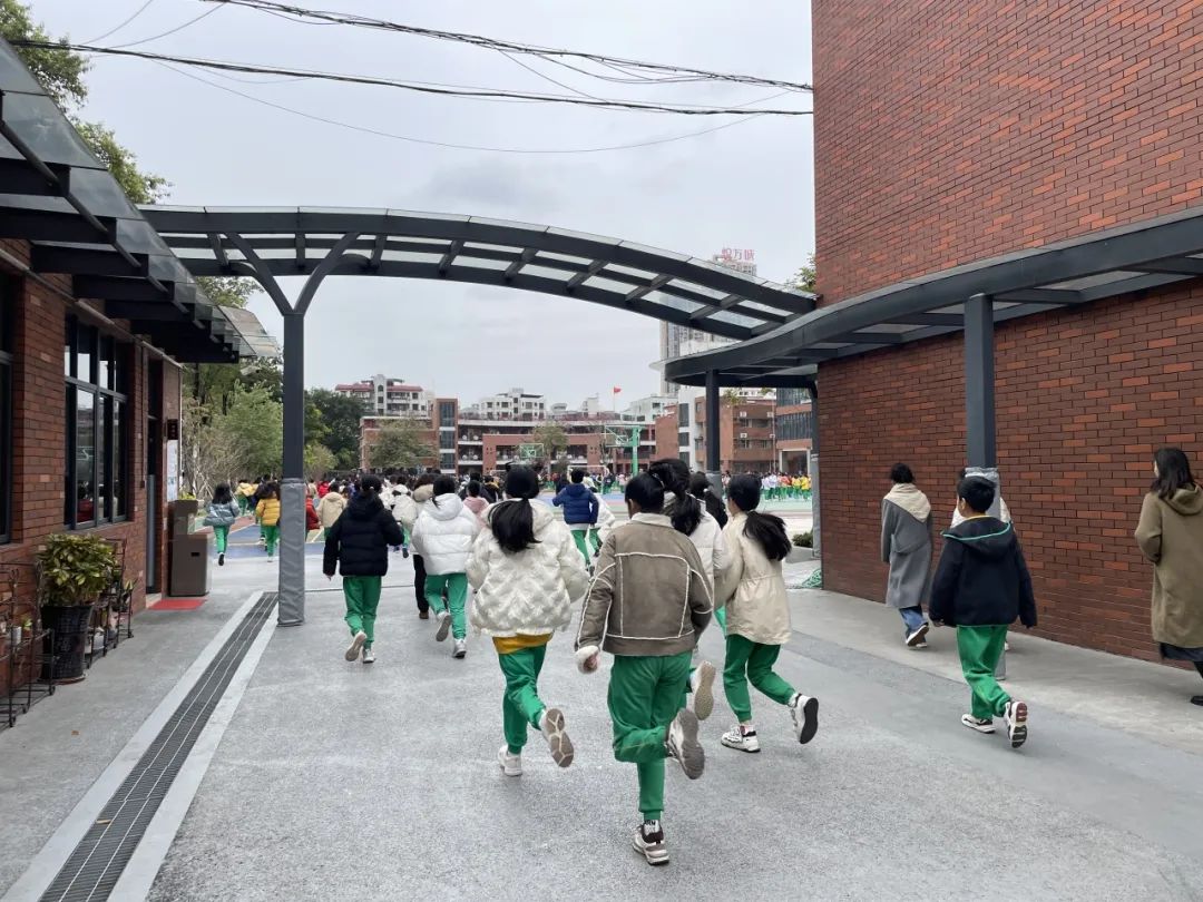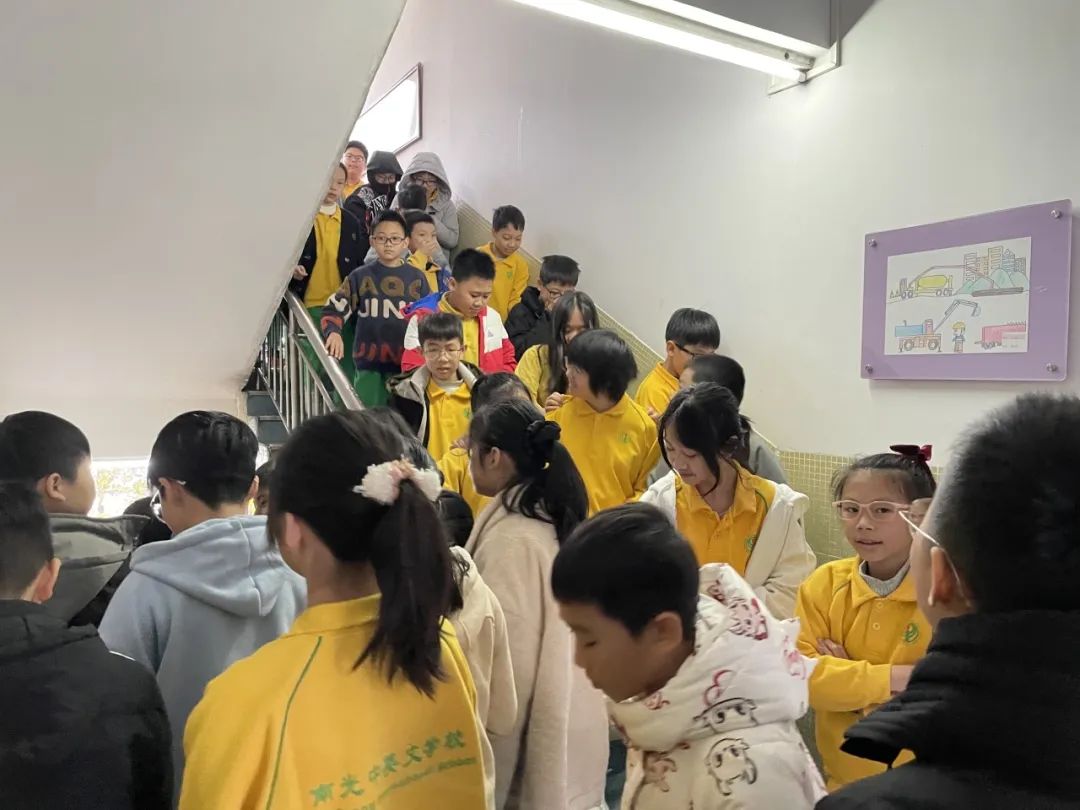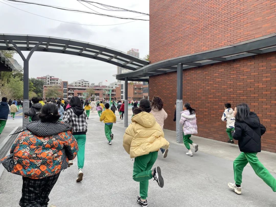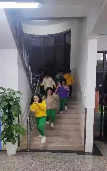 上午9:00,演练正式开始。各班学生在老师们的组织和带领下,迅速捂住口鼻,躬身弯腰,沿着规定路线快速、有序从教学楼撤离到学校操场的安全地带。疏散过程中,全体师生按照逃生要领,展现出不惊慌、心态稳、速度快的良好表现。