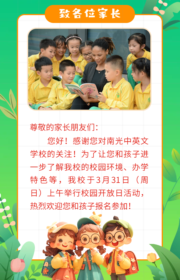 校园开放日邀请函 来源: 发布时间:2024-03-21 浏览次数:0 次 【字体:小 大】 【打印正文】 上一篇:春光烂漫 追风踏青—— 南光中英文学校2024年春季课外实践活动 [ 2024-03-21 ] 下一篇:春风化雨育桃李 辛勤耕耘结硕果 [ 2024-03-21 ]