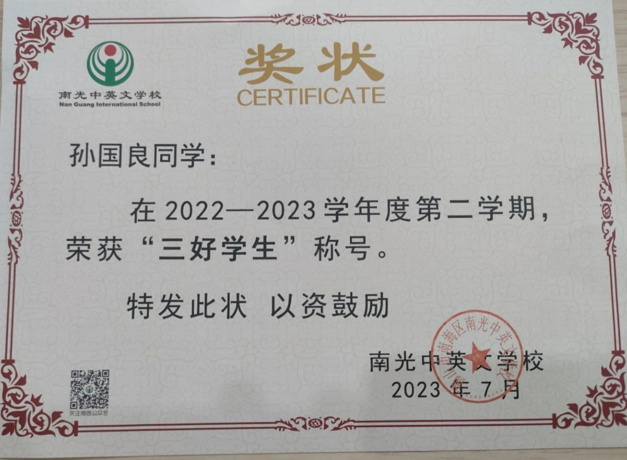国良,你是一个尊敬师长、品学兼优的孩子。平时,你正直善良,勤奋好学、积极向上,爸爸妈妈为你感到骄傲!从一年级到六年级,你没有辜负爸爸妈妈对你的期望,成为了一个懂事、阳光的孩子。毕业在即,爸爸妈妈愿你能够心怀感恩,无畏挑战,向着自己的梦想不懈努力。在这个过程中,你可能会经历挫折,可能会遇到困惑,可能会怀疑自我……但我们相信你能够勇敢地面对,坚强地走下去,去收获更加充实的人生!