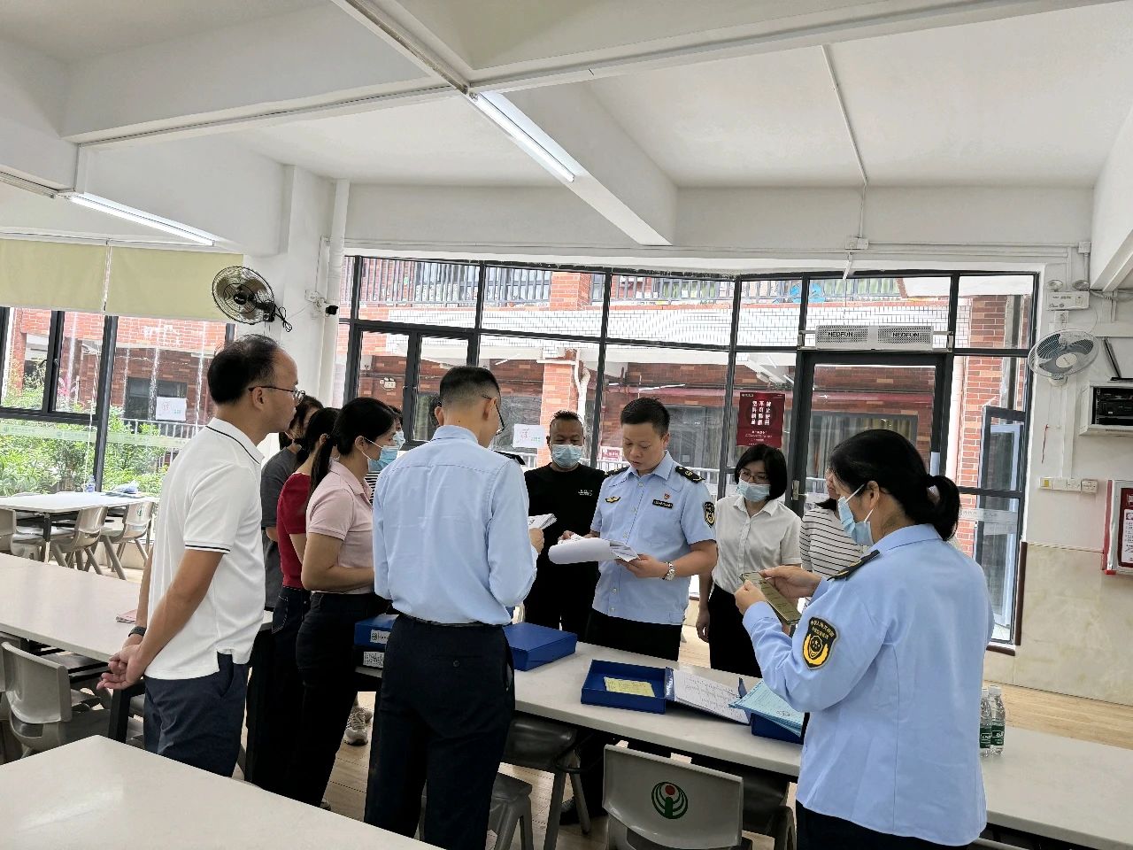 在黄云志校长的带领下,检查组一行来到食堂,实地检查食堂的环境卫生,认真查看各种资料,仔细了解原材料采购和存储情况,食品加工制作的流程以及食品留样和餐饮具消毒的具体措施等。经过严格检查,南海区市场监督管理局领导对我校食堂整体运行状况和食品安全管理给予了较高评价,同时也为如何更好地落实食品安全管理提出一些宝贵的意见。