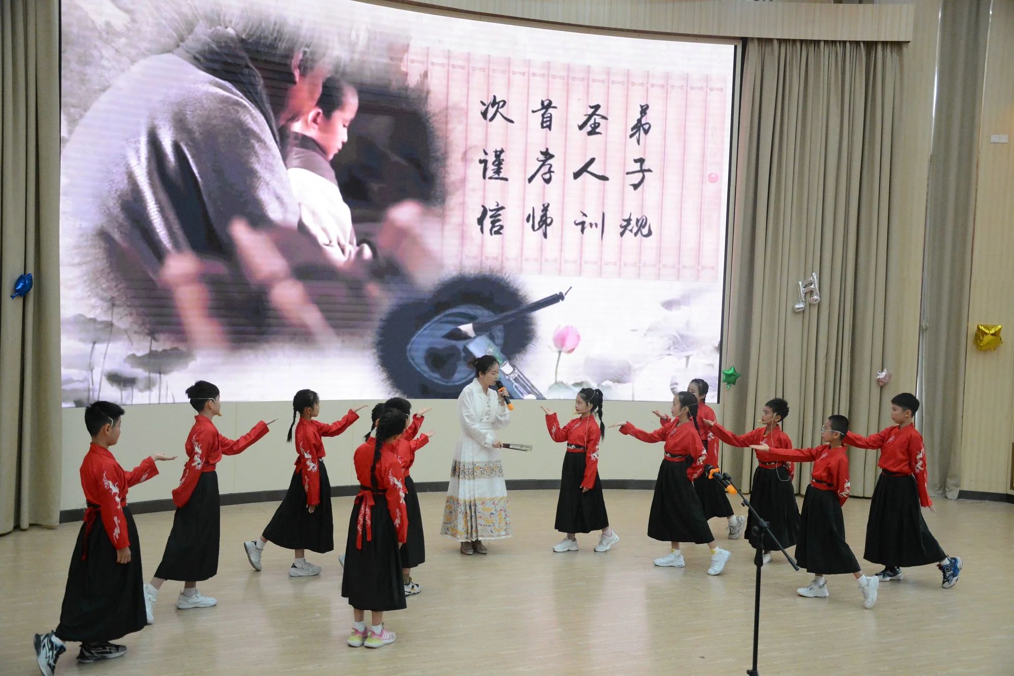 初冬时节流光暖,馨风飞送满书香。在这挥别秋光,寒风渐起的初冬,我们欢聚在南光中英文学校的“语言艺术秀”活动现场,跟随同学们的脚步,重温悠悠千载岁月,领略中华文化魅力,共赴一场精彩绝伦的视听盛宴。本次活动由汤秀英主任主持,黄云志校长、李焕玲副校长、吴建群副校长等行政、语文科组全体老师、参演学生及其家长出席了本次活动。
