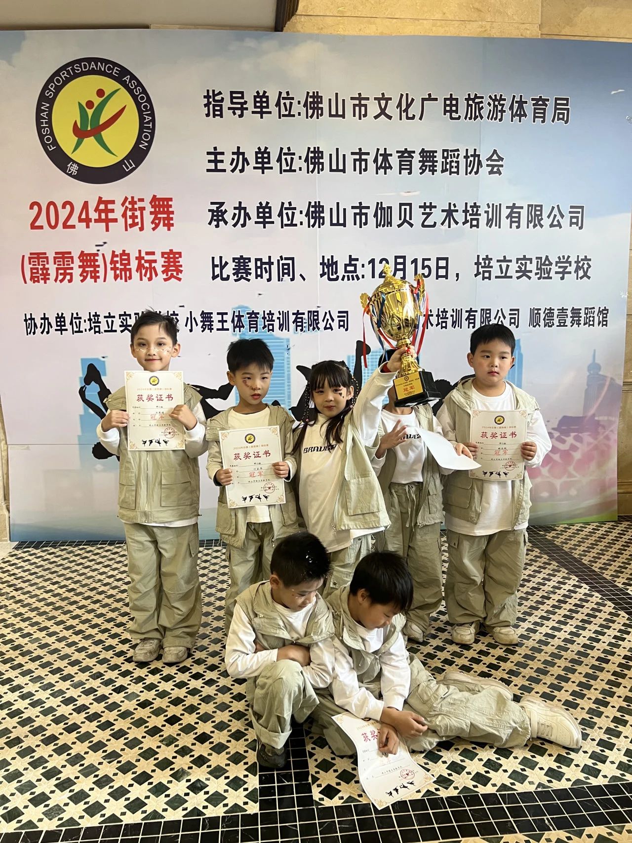 2024年12月15日,佛山市街舞(霹雳舞)锦标赛圆满落幕,我校街舞团队在比赛中表现出色,勇夺【高年级甲C组】亚军和【低年级甲D组】冠军,为学校赢得了荣誉。