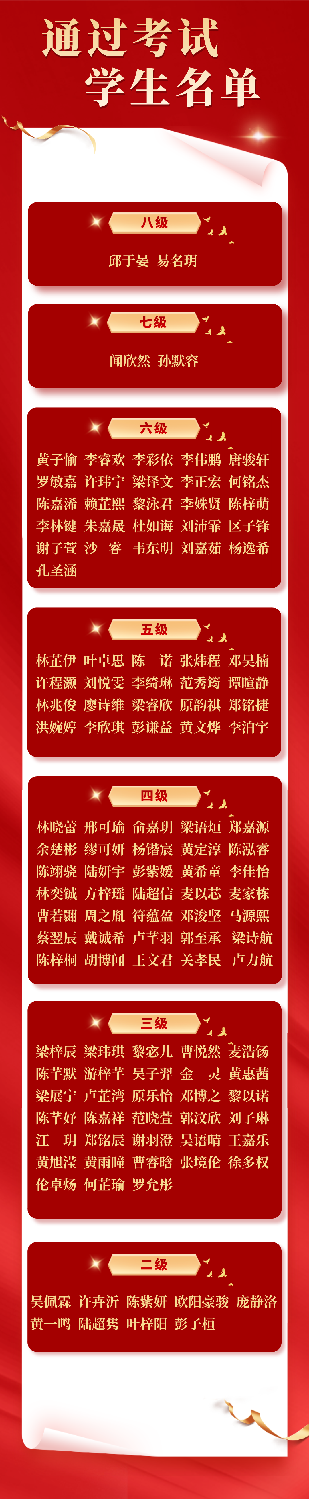 新春伊始,南光捷报再传。本年度的圣三一等级考试(TRINTY GESE)中,我校学子再次创造了优异的成绩,共有127名同学通过考试,最高通过级别为8级。祝贺以下获奖同学: